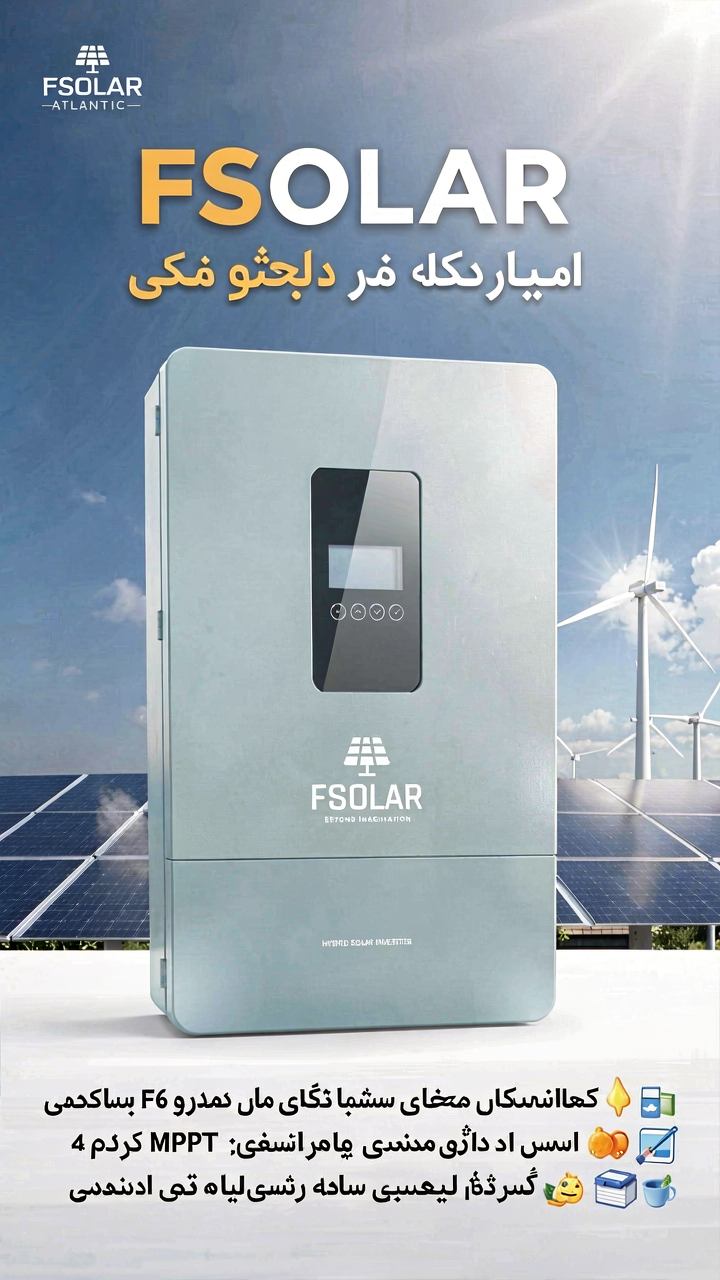 اینورتر خورشیدی FSOLAR ATLANTIC F6 یک دستگاه هیبریدی قدرتمند و مطمئن است که برای مصارف خانگی، ویلا و اداری طراحی شده.